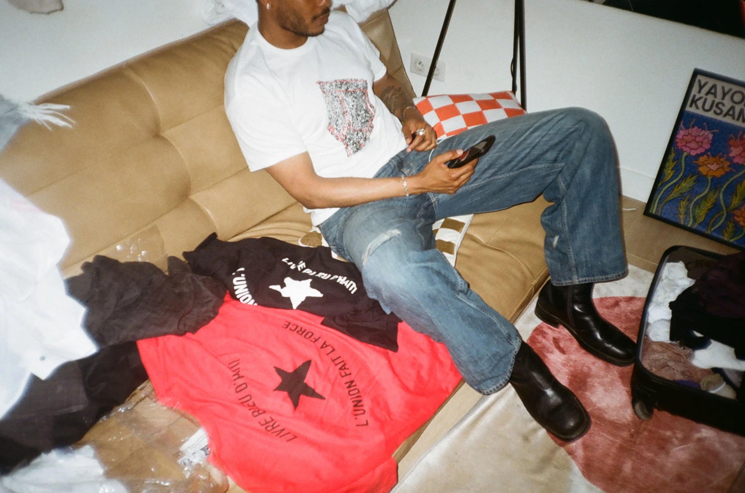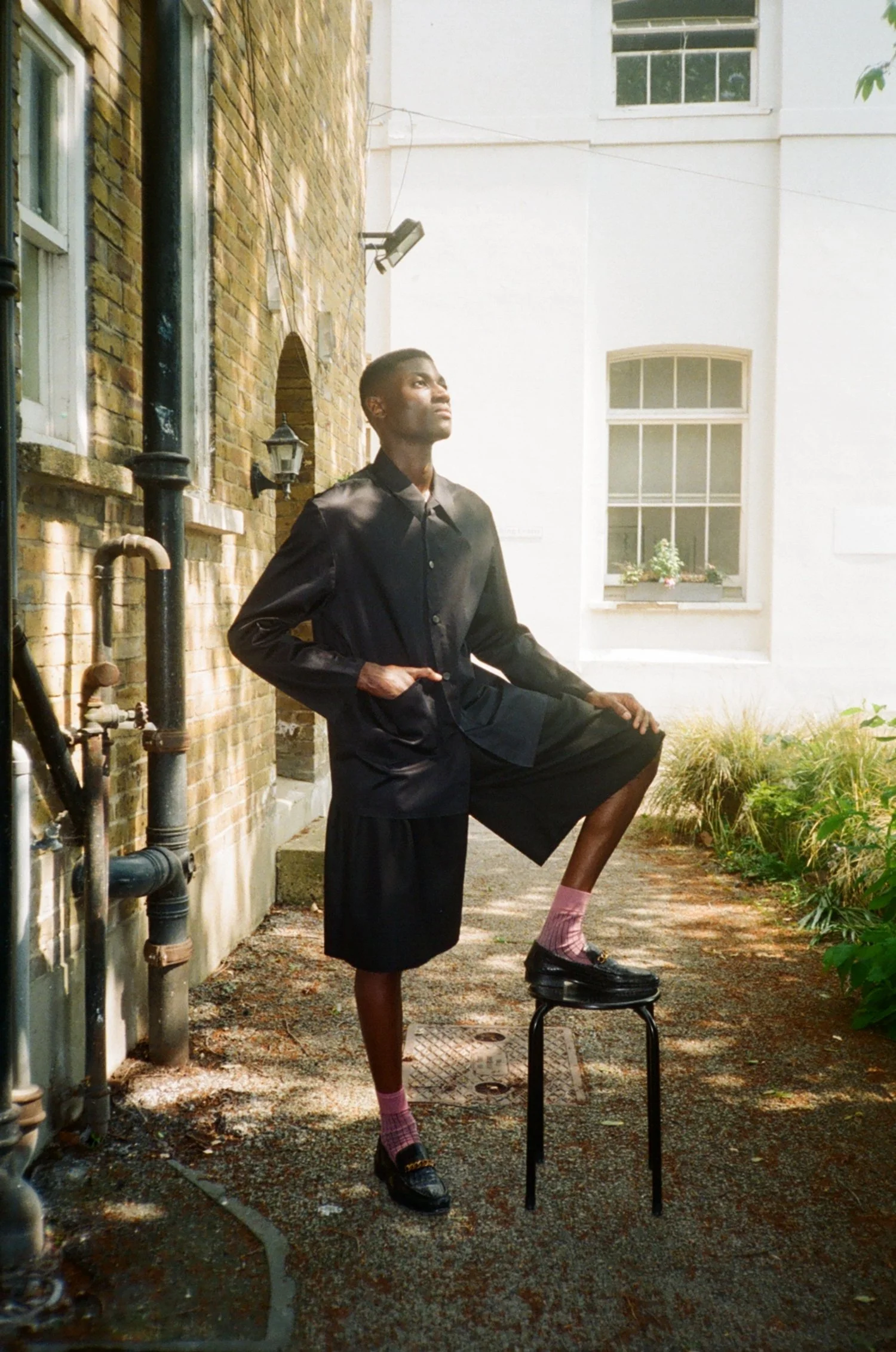 The campaign titled Spirited Away is a multi-part film and look book. This dark comedy, written by Kofi Dechie Couston, details the gradual haunting of someone who has just stolen the highly sought-after Cator Shirt (a part of Atana Lindor S/S25) from his deceased friend in the middle of his funeral. A play on Haitian spirituality and voodoo, the story begs the question “can you live without dying for something?”. The look book shot by London based photographer Tamibé Bourdanné, is a visual extension of the 3-part short film. Capturing portraits embodying the black and white photography of Haiti’s Kanaval. Bourdanné captures the two main characters as though they are frozen in the space between life and death.